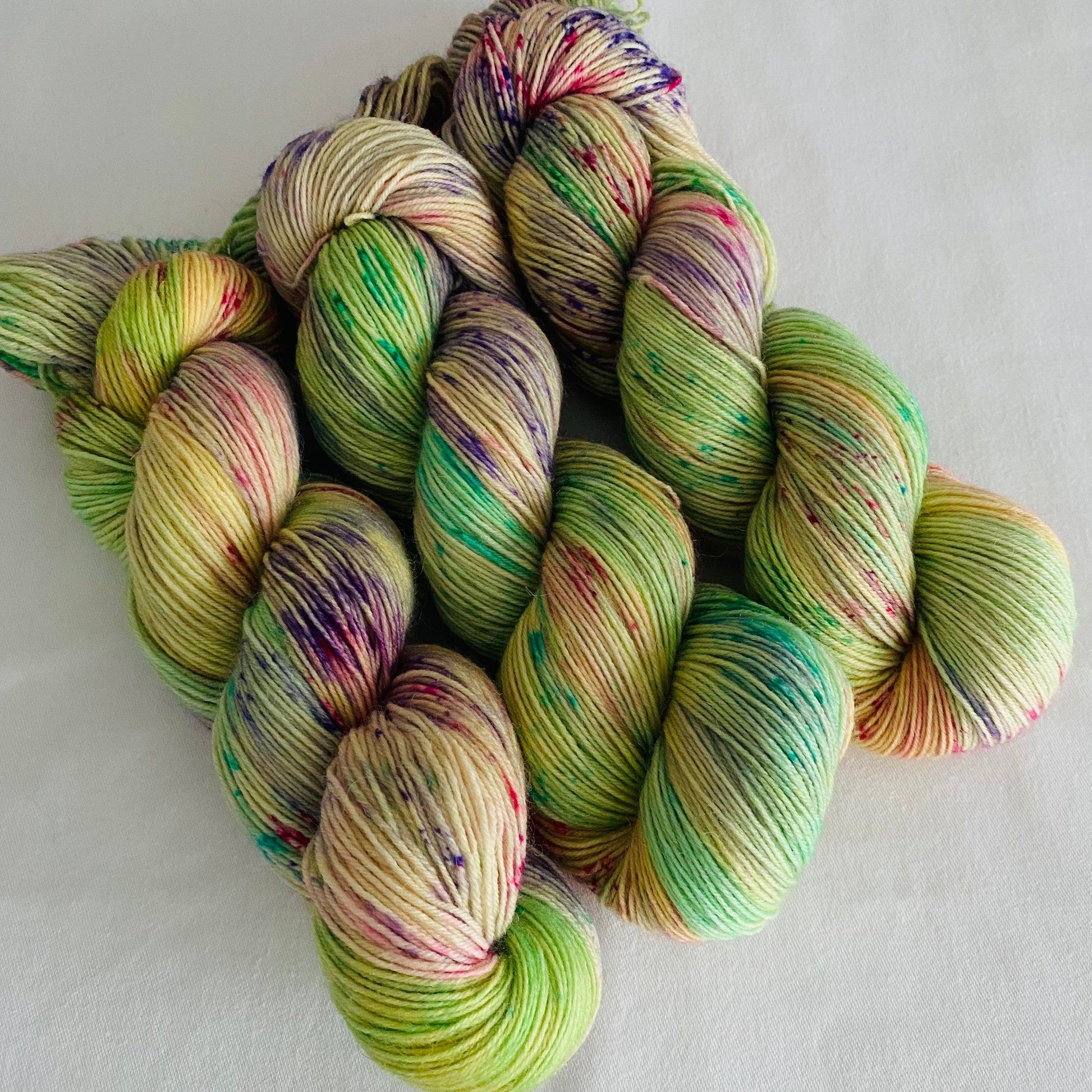 Handgefärbte Sockenwolle 4-fach.